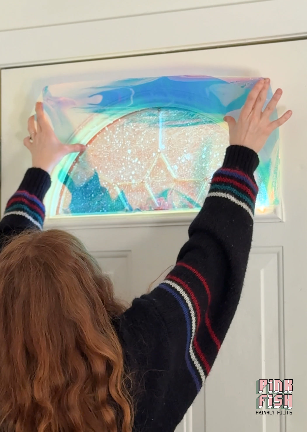 This is a self-adhesive window film. It is a more permanent film compared to our other products, but as with all adhesive window films, it can come off with a bit of knowledge and elbow grease. Perfect for anyone searching for iridescent privacy window film, one-way mirror tint, rainbow effect glass covering, or reflective daytime privacy solutions.