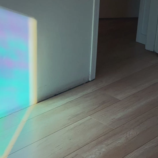 Transform your windows with this Blue Iridescent one-way reflective privacy film, designed for those seeking a blend of functionality and subtle visual interest. For window applications, it creates a mirror-like reflection from the outside during the day depending on sunlight, offering medium level privacy while allowing natural light to filter through without harsh glare. As direct sunlight hits, the film comes alive with shifting hues of blue, pink, and purple; visceral and ever-changing, adapting to the light's angle and intensity throughout the hours.
